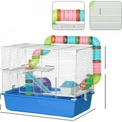 PawHut Hamster Cage W/ Tubes Exercise Wheel, Water Bottle, Food Dish – Blue
