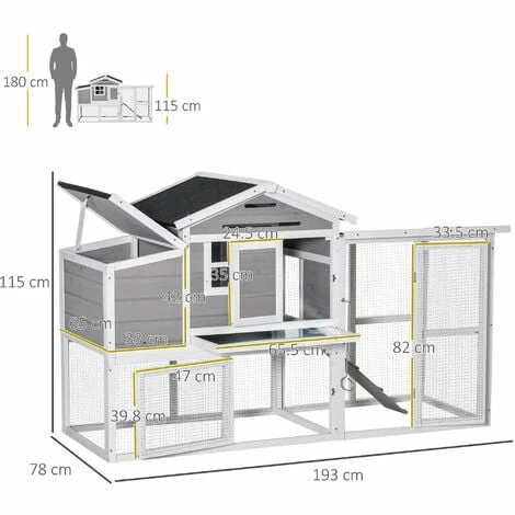 ● Main House Size: 72W x 65D x 65Hcm, Door: 24.5W x 35Hcm
