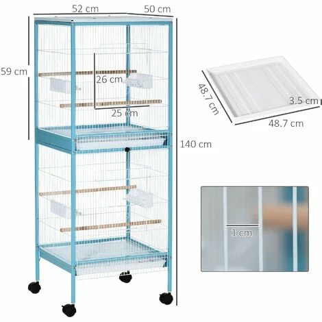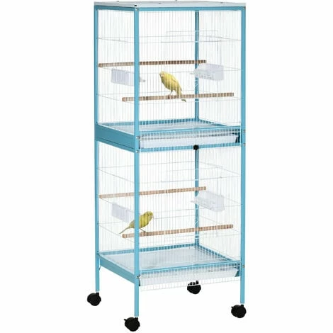 This PawHut cage provides birds with the space they need. There are two sections, both with two perches, so pets can stand, whilst flapping and extending their wings. For more room, remove the tray from the top section to make one big cage. There are multiple containers, which are easy to access, ensuring they have food and water. Four wheels for easy movement, whilst the large door lets you access and maintain the cage. Finished with two pull-out trays to remove dirt, keeping their home clean.