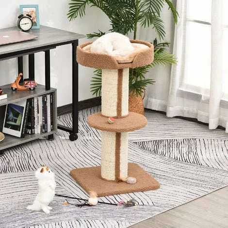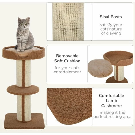 • Particle board frame for strength and durability, with a bottom base to keep it upright and stable • Central sisal scratching posts so your cat can keep their claws sharp