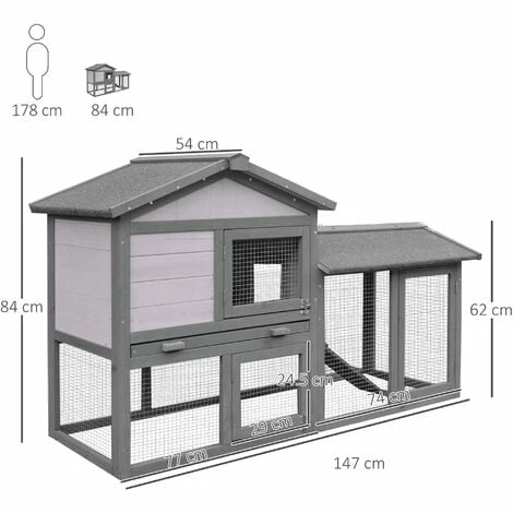 • Two level house, made from solid wood to ensure long lasting strength and plenty of room for you rabbit/guinea pig/hamster/other small pet to roam around