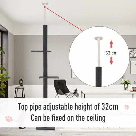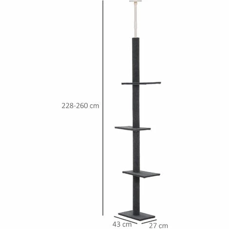This PawHut large cat tree suits for cats which like climbing. It’s a floor-to-ceiling design with a height-adjustable top pole, meaning it is suitable for lots of differently-sized rooms. Using particle board for a structure which is solid and tough, it is covered in flannel material which is safe and comfortable. The cat tower comes with three evenly spaced perches so cat can move up and down and rest at different levels. Finished with a large base so it stands level when securing in place.
