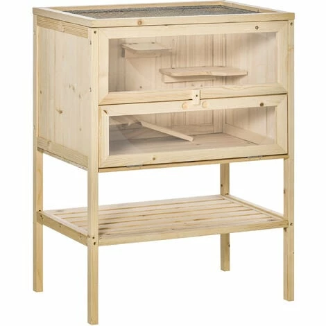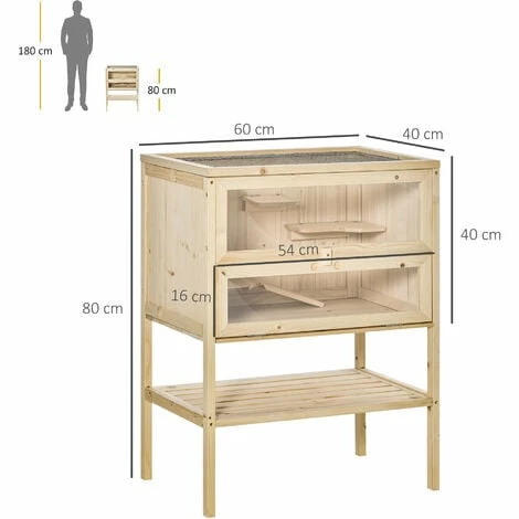 The natural wood PawHut cage is a fully furnished hamster home. With the modern design and high-quality fir wood, it is a perfect home for hamsters to play and exercise. Hamsters may look like to sleep the whole day