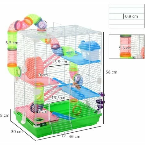 β’ Features a water bottle, food dish and exercise wheel, keeping them active, fed and hydrated