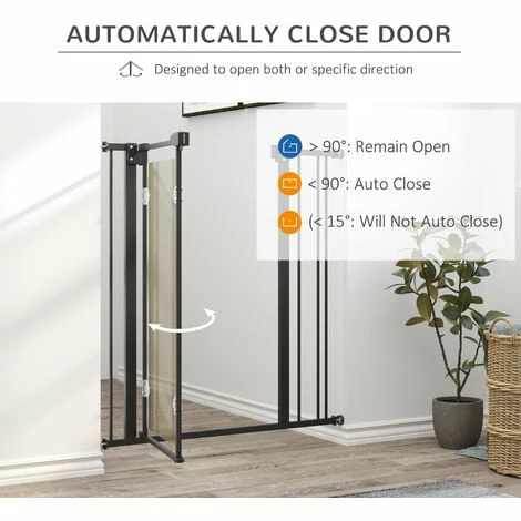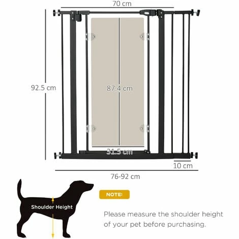Keep dogs from restricted areas with this PawHut safety gate for dog. Suitable for hallways, doorways and staircases, it has an adjustable width of 76-92 cm – perfect for different sized openings. The door automatically closes when its angle is less than 90° – no more worrying about leaving it slightly open. It’s pressure-mounted, making it easy to set up