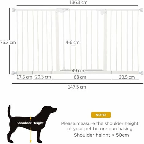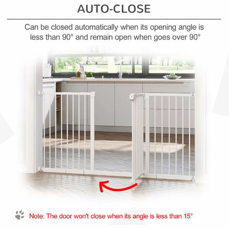 Need to keep pets away from certain places? This PawHut pet gate does the trick. Suitable for hallways, doorways and staircases, the width is adjustable for different sizes. Its metal frame stays in shape when in use, whilst the lead-free surface keeps pets safe. Door automatically closes if it’s open at less than 90°, so it isn’t a problem if left slightly open. Accessories are included, making it easy to assemble – you can get your gate up instantly, so pets stop going to restricted areas.