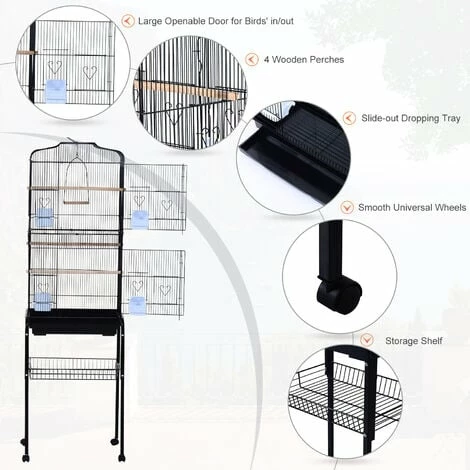 • Removable four wheeled tray to move cage around easily with handle on top of cage to lift