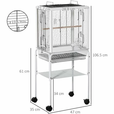 A secure space to keep birds comfortable, thanks to this cage from PawHut. It’s connected to a rolling stand and shelf – you can move it around and store essentials underneath. The cage is detachable for carrying, whilst making it ideal for smaller spaces. It includes two containers for feeding and there are two perches – one goes on top of the cage because of its openable roof, providing more room for birds. Finished with a slide-out tray for effortless cleaning, keeping their home tidy.