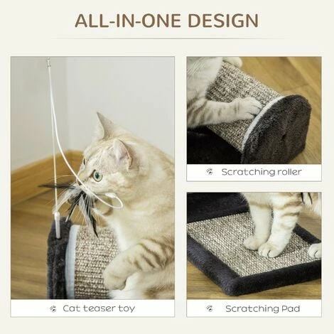 Treat your pet to this cat scratcher from PawHut. Covered in soft plush fabric, they’ll have a cosy spot to rest and sleep, whilst the sisal rope material lets them scratch and sharpen their claws, so they’re less likely to ruin your furniture โ when they’re feeling playful, they’ve got a hanging feathered toy to keep them entertained, especially when they’re alone. It’s a great way to add fun and comfort to their day-to-day life.