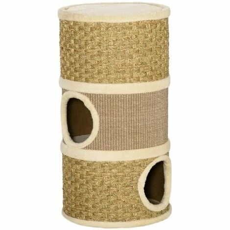 This cat scratching barrels from PawHut is sure to be a favourite with your cat. It offers an amazing place to play, sleep and hide. There are two den areas which are connected via a large hole inside, giving them twice the space to move around and hide away. The top deck of cat barrel is covered with soft and snuggly material, for comfort as they snooze. Something different to liven up their days and keep them calm at night.