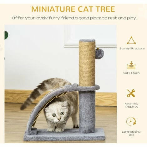 Safely satisfy your cat’s instincts with this cat tree from PawHut! This small cat tree features a scratching massage board, a hanging ball with bell and a jute post for so much fun. Cat scratchers benefit both pets and owners by providing someplace to relieve catsβ desire to claw and climb and save your carpets and household furniture from damage. Rest, play, exercise, your cats can spend all day on it, a comfortable unit for your furry friends.