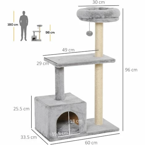 Keep your cats endlessly entertained with the PawHut cat tree! This special pet play area features a ton of super fun and interesting activities for your favorite little ones. With a soft basket to sleep and bask on, a funny cat ball to play, this cat tree is the perfect solution for your fussy friends! Cat scratchers benefit both pet and owners by providing someplace to relieve catsβ desire to claw and to climb and saving your carpets and household furniture from damage. Rest, play, exercise, your cats can spend all day on it, a comfortable unit for your furry friends.