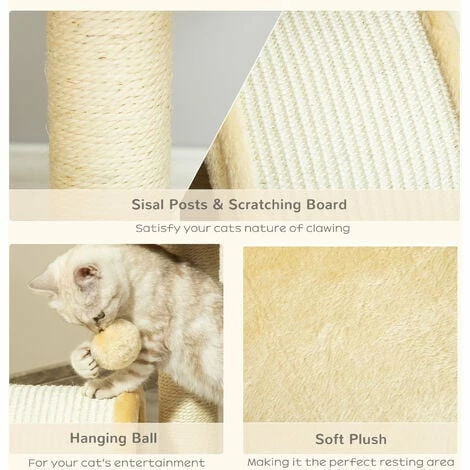 Satisfy your cat’s natural instincts safely with this cat tower from PawHut! This multi-activity centre features natural sisal covered scratching posts, curved scratching board, teasing ball toy, and perches. Cat scratcher benefit both pet and owners by providing some place to relieve cats’ desire to claw and to climb and saving your carpets and household furniture from damage. Rest, play, exercise, your cats can spend all day on the cat climbing tower.