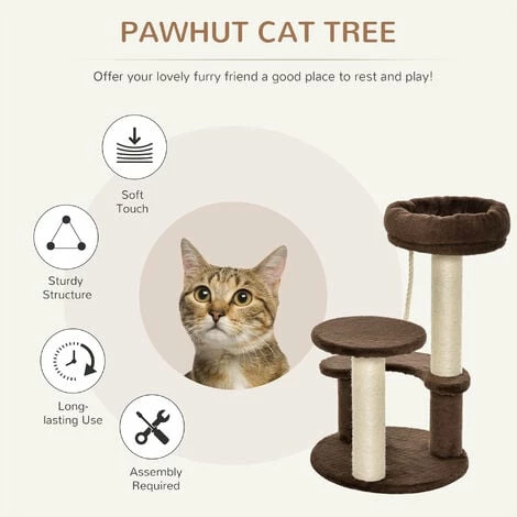 Are you looking for a way to help your cat and save your furniture at the same time? Every cat and kitten needs a place to relax and be entertained. This PawHut cat tree fulfills those desires and more. It provides endless opportunities for the cat to play, scratch or just rest. Added fun with hanging rope. When a cat has a personal space from PawHut that is all their own, it adds value and benefit to any indoor environment.