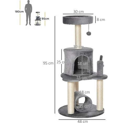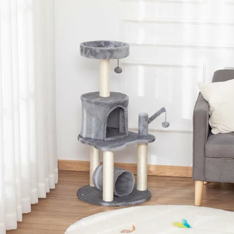 Your pet’s day-to-day life will change, thanks to the cat activity centre from PawHut. With a cosy house and bed that’s covered in soft plush fabric, they’ll be snug and when they’re feeling playful, they’ll have two hanging toys that’ll grab their attention, especially when alone. The sisal posts will satisfy their urges to scratch and climb β deterring them from using furniture. Its particle board structure is durable, which is great for daily use β fun and comfort will be their new norm.