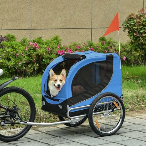 Drive your pet around the streets in style with this dog trailer for bicycle from PawHut. With a steel frame for a strong and reliable structure, the dog cart is made into a spacious design, featuring mesh windows all around to allow air to circulate properly, reflectors and a flag for visibility in the dark, zip fastenings for easy access and an safety anchor point for security. Made from weather resistant Oxford fabric, the body shelters your pet from light rain.