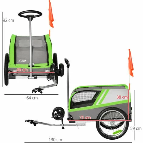 Take your pet on an adventure with this bike trailer for dogs from PawHut. Pull it for walks or attach to your bike, treating your furry passenger to longer and exciting journeys. The zippered back door and open top allows your pet to easily get on and off. The meshed windows and sunroof keep your pet cool on their trip. Stay visible in traffic and at night, with added reflectors and the red flag at the back, keeping you safe. Strap your pet to the leash and experience a different day out.
