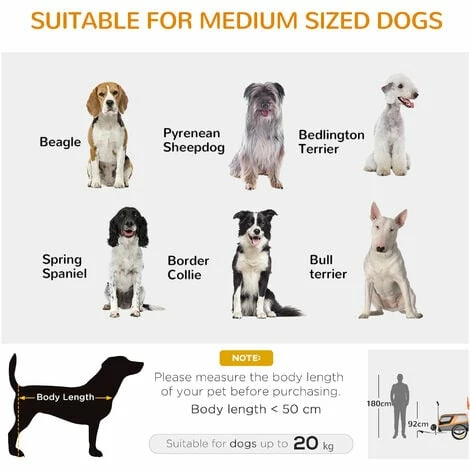 ● Suitable for medium dogs less than 50 cm in length and less than 20 kg in weight, assembly required