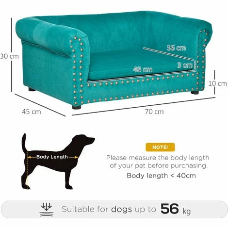 Pets deserve the best, too. Give them something comfortable and luxurious to relax their days and nights away in. This PawHut couch is crafted into a cute design: diamond pattern on the back, with metal studding on the front for a little edge. The spacious size gives them a lot of room to rest, with a padded seat cushion for comfort. Made from wood, the frame is sturdy and can support pets up to 6 kg. Finished with four feet for balance.