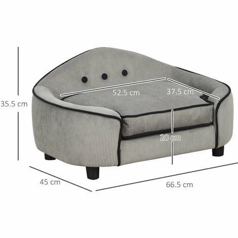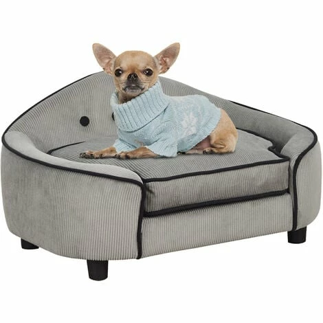This dog couch from PawHut is made for cats or dogs to lounge in luxury. The frame is made from wood, making it solid and stable during everyday use, and it’s crafted into a large oval shape, giving them plenty of resting room. The corduroy-feel upholstery is soft to the touch, and it’s fitted with a thick cushion for them to lie on comfortably. Black piping on the seams provides a stylish contrast, and this grey dog bed is finished with four thick feet to keep the balance of the frame.