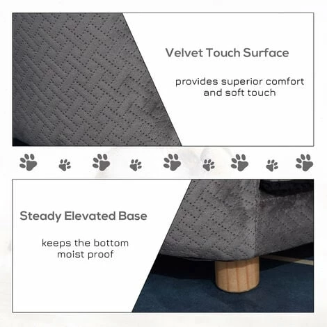 Bring comfort into your pet’s life with this PawHut sofa. Its thick sponge cushion β covered in soft velvet-touch upholstery β will be the cosiest spot in the house. Three-sided bolsters stop your furry friend from falling off, whilst the four wooden legs ensure the sofa remains stable and balanced when in use. Its modern all-grey design is a classic match with any home dΓ©cor, making it snug and stylish. A piece that provides small dogs and cats with days of blissfulness.