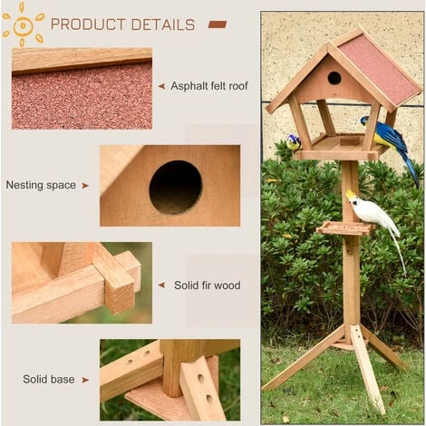 • Solid fir wood frame and tripod base make this bird platform stable and durable