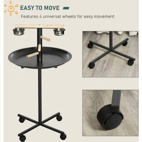 This PawHut bird feeding station provides a spot for birds to relax, whilst having easy access to food and water, thanks to the two stainless steel bowls. They’ll be standing on strong wooden perches, whilst the tray underneath, which is easy to clean, catches bits of food and bird droppings, so it doesn’t fall to the floor, keeping your space tidy. Four wheels at the bottom – you can move the stand anywhere with minimum fuss.