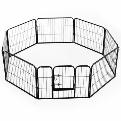 This pet playpen are perfect for a variety of pets. It can be easily set up for indoor and outdoor use. 8 durable panels could be folded up for easy storage. Sturdy metal wire with anti-rust coating ensures long time use. It will be a secure protection area for your petsā living and romping around outdoors without your worries.