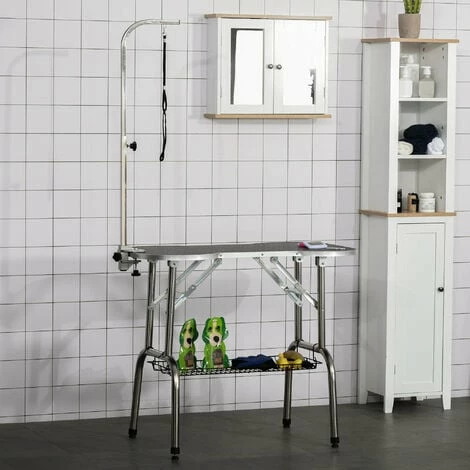 This grooming table from PawHut is a great investment for any professional or in-home groomers. It features an adjustable grooming bar that can raise the level of your furry friend so you can reach them easily for bathing, trimming, drying or grooming. Comes complete with a sling to keep your pets safely in place for operations. It is a professional quality piece of grooming equipment you deserve to have.