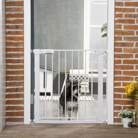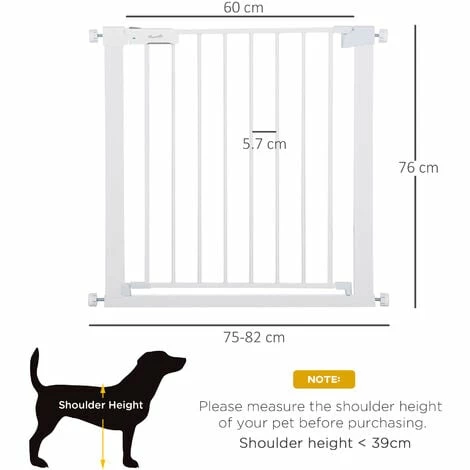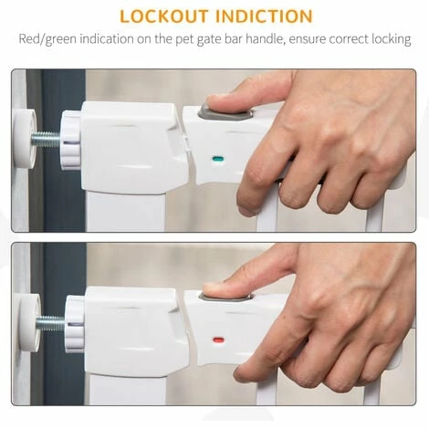 Need to keep pets from certain places? This PawHut pet gate does the job. Made from white-coated steel, the dog stair gate is strong and durable, staying firmly upright when in use. Width is adjustable between 75-82cm for different sized spaces. If the dog barrier is open at less than 90°, it automatically closes and locks – the red and green indicator signals if the door is locked or not. It opens both ways to easily pass through. You’ll have peace of mind, knowing pets cannot access forbidden areas.