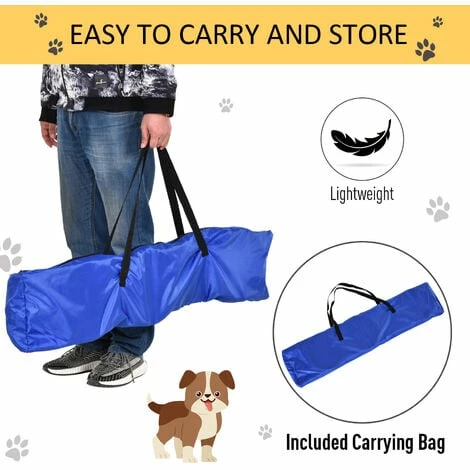 For dogs, physical activity and mental stimulation are both important to have a happy, healthy life. With this Pawhut pet agility set, your pets can get trained and have a lot of fun. This dog agility obstacle benefits both owners and pets, owners can teach their pets new tricks whiling playing, and build a close relationship with them. It’s lightweight for quick and easy setup and convenient transport with the carrying bag, you can use it on the grass or any flat ground.