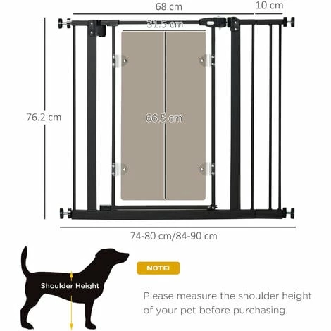 Keep dogs from restricted areas with this PawHut safety gate for dog. Suitable for hallways, doorways and staircases, it has an adjustable width of 74-80cm and 84-90cm – perfect for different sized openings. The door automatically closes when its angle is less than 90° – no more worrying about leaving it slightly open. It’s pressure-mounted, making it easy to set up