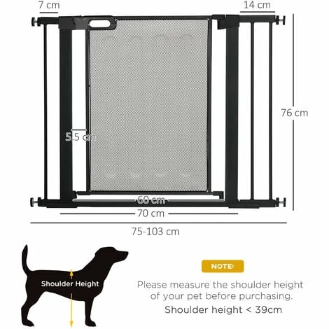 Keep dogs from restricted areas with this PawHut safety gate. Suitable for hallways, doorways and staircases, it has an adjustable width of 75-103cm – perfect for different sized openings. This pet gate automatically closes if it’s open at less than 90° – no more worrying about leaving it slightly open. It’s pressure-mounted, making it easy to set up