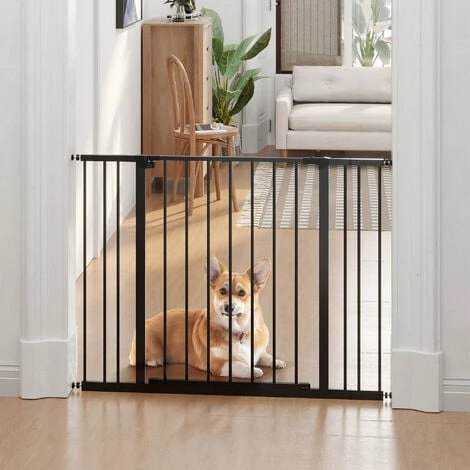 ● Extra-wide door of puppy gate indoor to walk through, with quick-use operation
