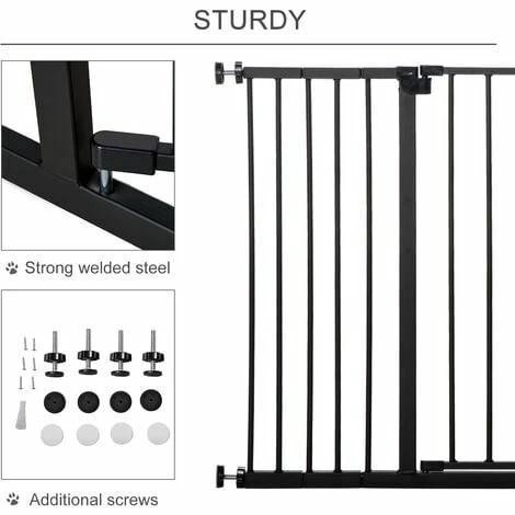 ● Made from powder coated steel of this puppy stair gate for strength and durability