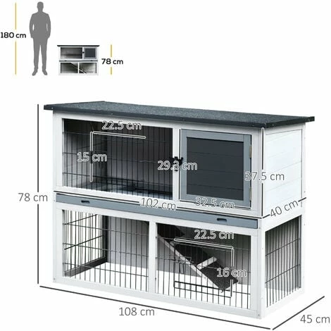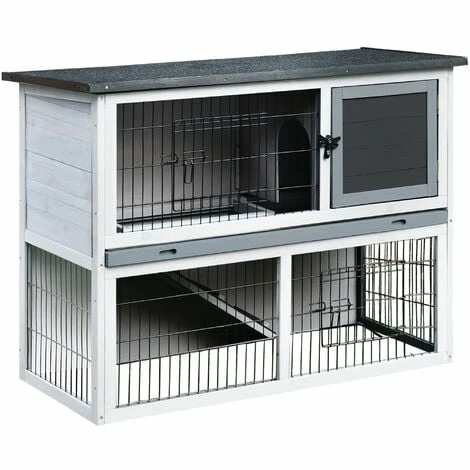 Make pets feel at home with this PawHut rabbit hutch. With two tiers, connected by a ramp, small pets have lots of space to move around. They’ll have a private area to rest, whilst the large run area, which is surrounded by steel wire for security, lets them get fresh air. Made with a solid wooden frame with protective paint, it’s suitable for outdoors and keeps pets secure when inside. Finished with an openable roof and removable tray for effortless cleaning, so they live in tidiness and comfort.