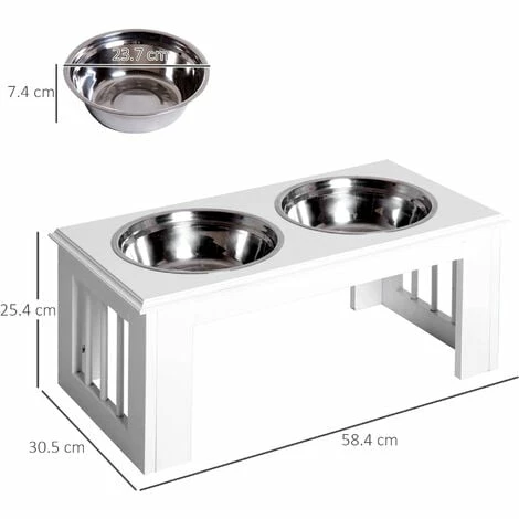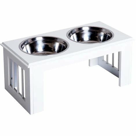 Make meal times easier for your pets with this cat bowl with stand from PawHut. With an MDF base that has been built to provide years of use, it features two round stainless steel bowls. Durable, hygienic and dishwasher safe, both bowls are easy to look after and safe for your pets to use and are great used together for both food and drink. In an elevated design, the base helps make eating cleaner and easier for your pets, aiding digestion and putting less strain on the neck.