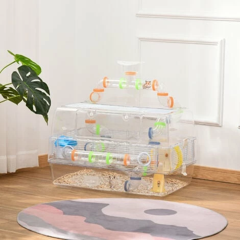Exhausted from searching for a cozy and comfortable home for your little lovely pet? Then search no more! The hamster cage for syrian hamsters tends to be a perfect house for your little family members! This 3-tier home provides plenty of options for interesting activity and also satisfies your pet’s natural instincts to explore, hide and play. It provides spacious activity space for your hamster.