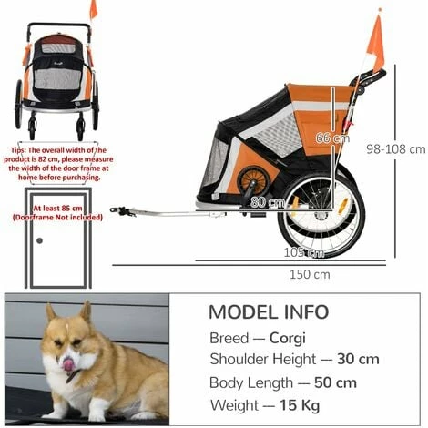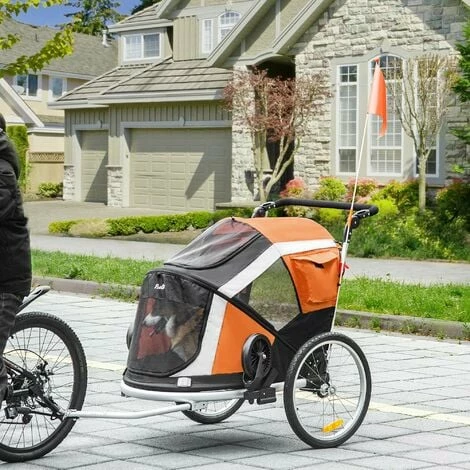 Enjoy adventures with your pets, thanks to this bike trailer for dogs from PawHut. It can be pushed as a stroller or attached to a bike, which is ideal for longer journeys. Three zippered doors let your pet get on and off, whilst the meshed windows and sunroof keep your pet cool on their trip. With added reflectors and a reg flag at the back of the dog carts with wheels, you’ll stay visible in traffic and at night. Strap your pet to the leash and treat them to a fun day out.