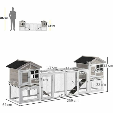 ● Run Boxes Sizes (under the main house): 51L x 53W x 36.5H cm, Door: 44L x 28H cm