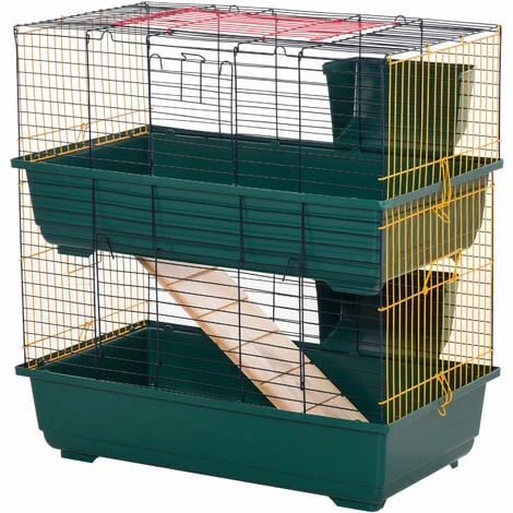 Give your small pet their own place to chill the day away with this 2-tier cage from PawHut. Our small animal cage is the perfect home for small animals like bunny, guinea pig, pet mink, chinchilla and other similar sized small pets. 2-tier design provides large living space for your pet to rest and play. 2 hay feeders included for your pet’s daily necessities. 3 doors included allows an easy access to the inside area for maintenance. Also features ramp to complete this cage. Keep them safe, keep them secure, but also keep them active and occupied for a long life worth living.