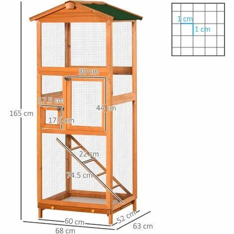 Keep your birds happy in the roomy interior of this outdoor bird aviary, offering a design not only large in its interior but large with its door access. With 2 doors at the front, you’ll be able to easily access your birds’ food, water, and the inside area. The roofing and materials are tough against weather, and suitable for outdoor use. The pull-out bottom tray makes cleaning quick and simple. Offering strong wire, this large cage for birds from PawHut is made for a better bird home.