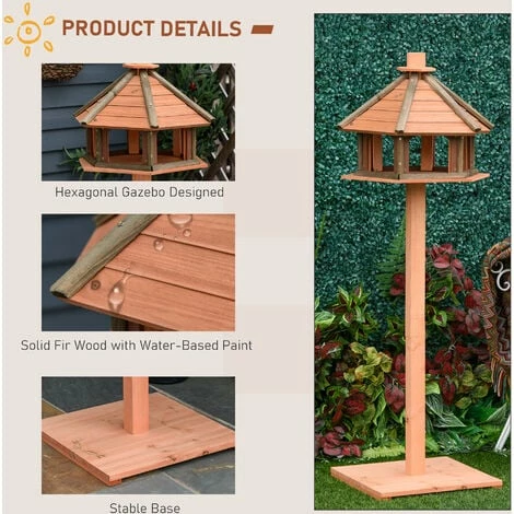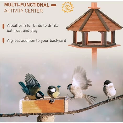 Get closer to nature with this bird feeders station from PawHut. This bird stand features a large top house, where the platform gives a place for birds to rest and eat any food left for them, with the large overhanging roof protecting the space from rain. The fir wood structure, with a weather-resistant finish, means this wooden bird feeder is suitable for mild outdoor use.