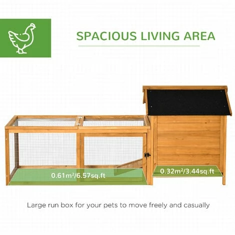 This PawHut chicken coop is designed to keep pets comfortable. It’s spacious and includes an outdoor run for playing, exercising and fresh air, whilst the raised house provides shelter and a place to relax. It also has a nesting box, so it’s simple to extract eggs. Fir wood structure makes a strong and durable home, which can house 2-3 chickens. With an openable roof and multiple lockable doors, it’s easy to access and maintain the cage, whilst the removable tray makes cleaning effortless.
