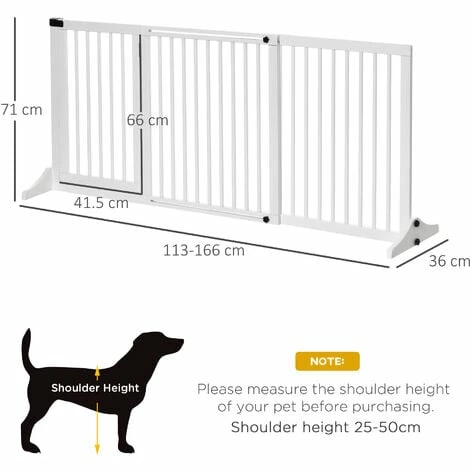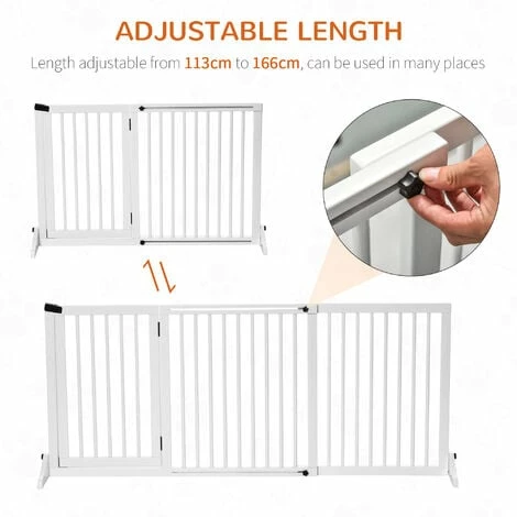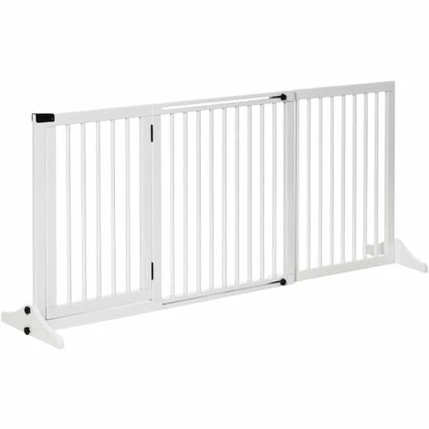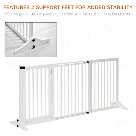 This PawHut wooden gate is a safe and efficient way to keep your pets in one area whilst adding a decorative touch to your home. It is a retractable gate with three separate panels, and its adjustable length and freestanding design allows you to use it in various places and sized areas. It features one double door panel for easy access, with a safety catch and wide feet on the end for balance. A great piece for the hallway, doorways, and other areas in the home.