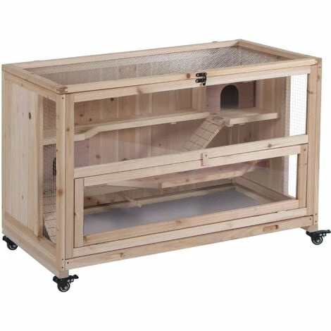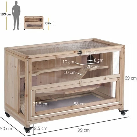 A spacious home where small pets can freely climb, play and roam. This three-level PawHut hamster cage has two huts, which they’ll use to rest and sleep, whilst the ladders let them easily get around. There are two openings, one at the top and the other at the front, so cleaning is easy, especially with the pull-out tray underneath. You’ll watch them through the glass window, as they settle into their new environment, which is made of sturdy fir wood – providing a long-term and homely habitat.