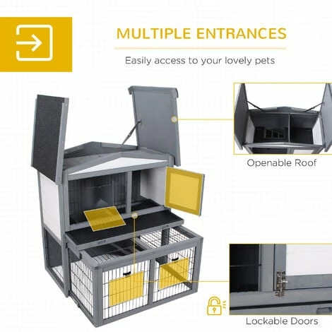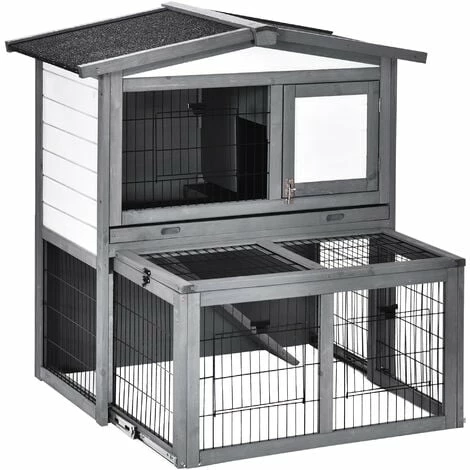 Give your beloved rabbit a safe and comfortable place to call home with this guinea pig house from PawHut. Made from fir wood strength. With a weather-resistant paint coating for protection outdoors, this piece is crafted into a two-part design, consisting of a house and an outdoor area. Multiple doors and a pull-out tray ensure easy access to get your rabbit and clean the hutch, while the openable sloped roof with asphalt protects the interior from mild water damage.