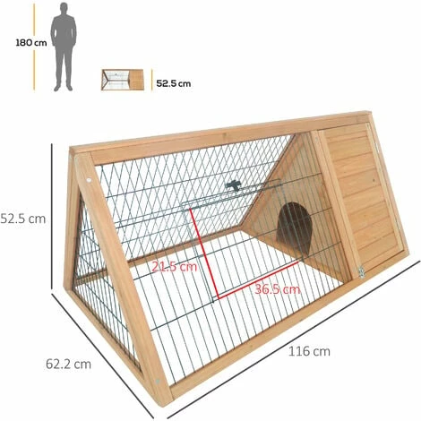 This PawHut rabbit hutch provides a safe and comfortable home for small pets. The outside area is secured with wire mesh, which provides proper ventilation and lets you keep watch – they can run, play and get fresh air. When it’s time to rest, they’ll have a private house with a triangular roof to get comfy and stay sheltered. There’s a door in both areas for easy access to and from the hutch, whilst the compact design of the cage requires little space – perfect for all garden sizes.